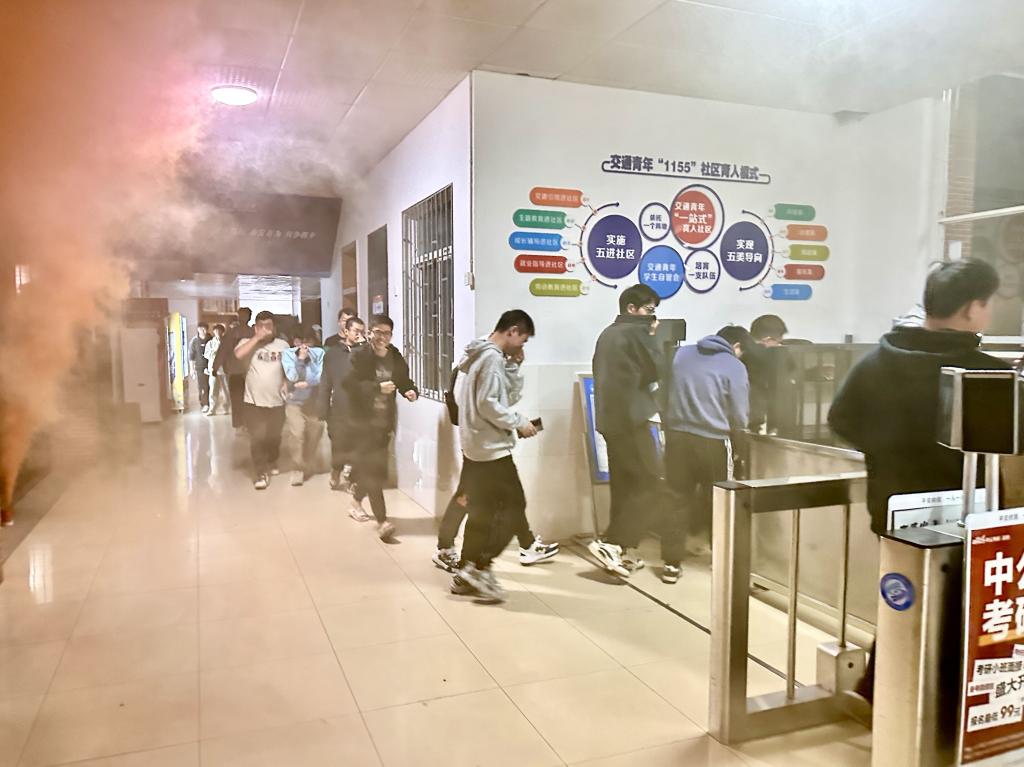为进一步推进平安社区建设,增强学生的消防安全意识,掌握基本消防常识、培养火灾自救逃生技能,创造安全和谐的校园环境,交通学院于11月20日晚18:30 -19:10在行健轩三栋开展消防逃生疏散演习活动,交通学院党委副书记涂道勇、保卫处消防科易国安、交通学院学工办冯心崚出席了本次活动。