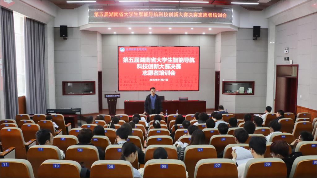 为保证大赛顺利开展,提升志愿者专业水平,为赛事提供全方位、多角度的志愿服务,11月21日,交通学院于云塘校区工二B301举办第五届湖南省大学生智能导航科技创新大赛志愿者培训会,会议由交通学院团委书记彭笠主持,测绘系支部书记徐鹏出席,交通学院学生志愿者共计60人参加。