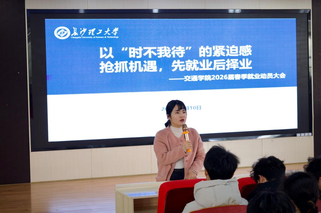 为推动毕业季各项工作有序开展,交通学院于3月10日在工三A307召开2026届本科毕业生年级大会。院党委副书记任志祥、辅导员汪招霞和李特超,2022级全体本科毕业生参会。