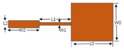 设计如图1所示的具有四分之一波长馈线的方形贴片天线。利用CST软件仿真其辐射性能。