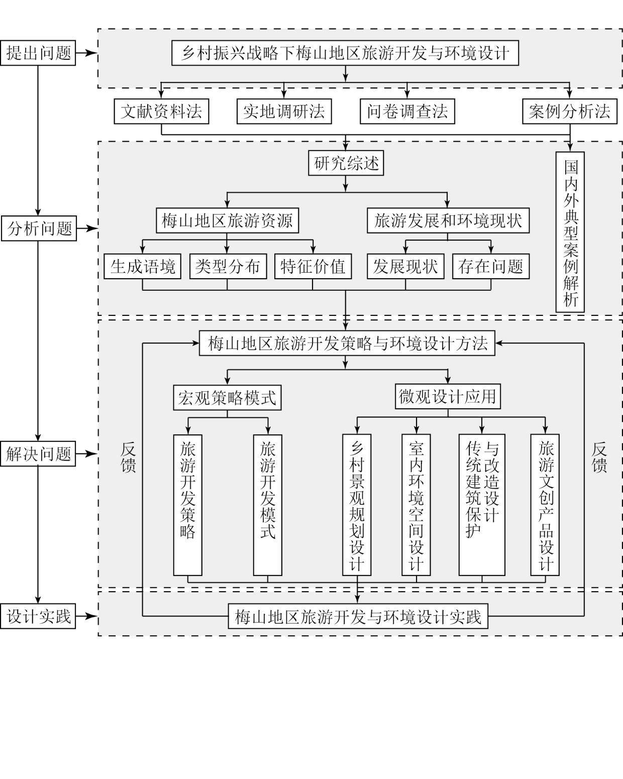 ③将研究得出的梅山地区旅游开发策略与环境设计方法应用于设计实践中。