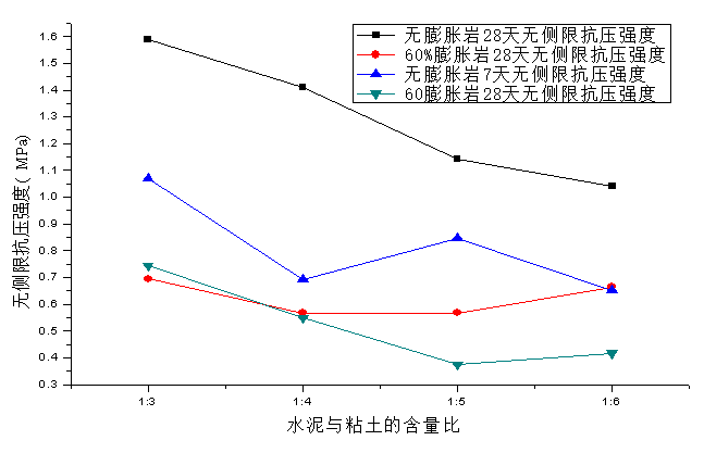 2.研究改良材料之间的配比方案,找到最佳的配比方案,使得改良后的膨胀岩在满足强度要求的情况下经济节约。