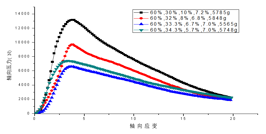 对实验数据借由origin等专业绘图软件进行二次处理,得出不同配合比下