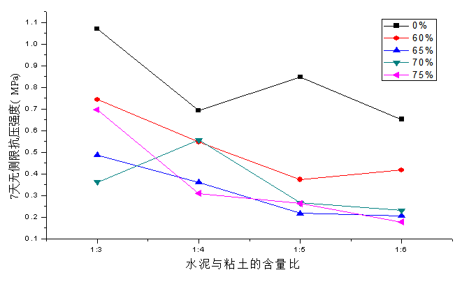 的改性无侧限抗压强度,确定一定抗压强度下的最优配合比,结合工程实际确定相应改良方案。
