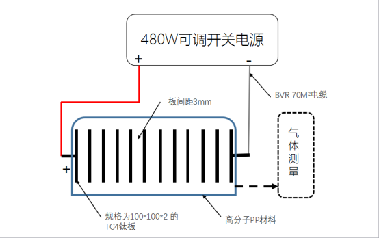 发生器材料:作为绝缘基材,规格为100*100*2 的TC4钛板材作为电解极板,BVR 70M2电缆作为连线材料。