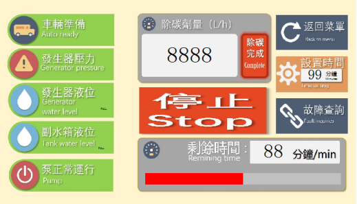 智能化的控制系统,可以高效率的对水氢发生设备进行控制。可以一键运行,自动除碳,无需任何人工干预。极大的提高了效率,降低了人工成本。并且实时采集数据,对除碳参数进行自动反馈设置,同时以图形化的方式在交互平台上进行显示。
