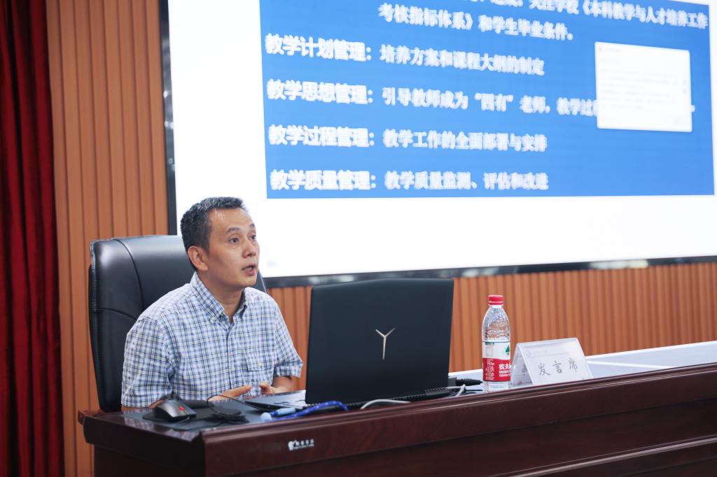 教务处处长陈瑜对学校教学管理系统、教务处机构设置以及校院两级教务管理职能进行了详细介绍,围绕专业建设、课程建设、教材建设、教研教改等工作,从工作现状、制度建设、文件要求与工作流程等方面进行了全面解读。她强调要创新管理理念、加强队伍建设、完善激励机制,在遵循高等教育基本规律基础上,利用现代科学技术手段和管理方法,建立教学管理决策、教学情况反馈及教学过程监控系统,对动态的、全程的教学活动进行有效管理。
