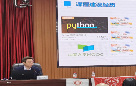 会上,嵩天教授作了题为《问题导向、多元嵌入,建设新时代“一流”本科课程实践与思考》的讲座。讲座以建设一流课程为主题,以“Python语言程序设计”课程为例,介绍坚持“问题导向”的高质量课程建设实践,提出一流课程需要建立在一流问题上的基本观点,进一步,从宏观、中观、微观三个层面给出挖掘教学问题的可操作方法。介绍新时代大学课程的变革因素,阐述“线上对标”的重要性和必要性,提出通过线上对标、混合融入建设新时代高质量本科课程的基本方法。为推动“一流”课程建设提供参考。讲座完成后,嵩教授与在座各位老师进行了现场答疑与互动交流,与会的老师纷纷表示收获良多。