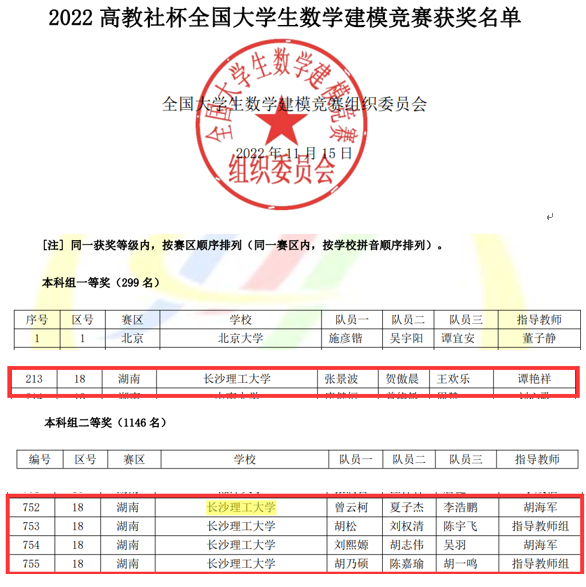 近日,“高教社杯”2022年全国大学生数学建模竞赛成绩揭晓,MG冰球官网获全国一等奖1项,二等奖4项,省级奖26项(其中省一等奖7项)。近三年,MG冰球官网连续获得该赛事全国一等奖。