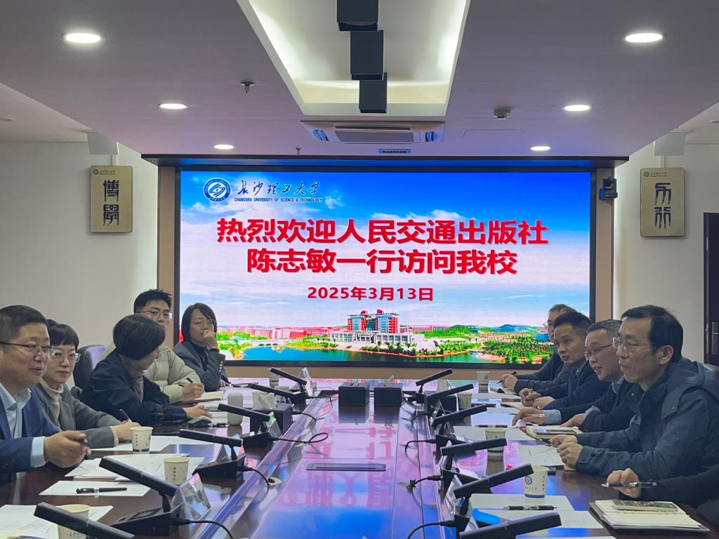 3月13日下午,人民交通出版社副总经理、总编辑陈志敏一行9人来MG冰球官网调研,教务处副处长刘涛、科技处副处长陈铭言、交通学院副院长叶群山、土木与环境工程学院副院长付果、机械与运载工程学院副院长唐宏宾、国际工学院副院长彭晖及水利与海洋工程学院党委委员唐栋参加座谈会,会议由刘涛主持。