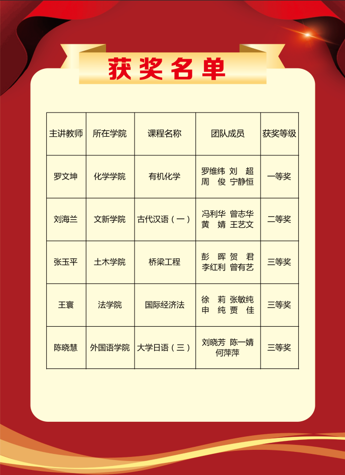 本次竞赛共设理工农1组、理工农2组、文学教育艺术组、经管法组、医学组、外语1组、外语2组七个组别。历经校级初赛、省级复赛的层层选拔,最终来自湖南省33所本科院校的86个教学团队进入现场决赛。决赛包含说课、教学展示及问答三个环节,MG冰球官网参赛老师积极备赛,凭借巧妙的教学设计、生动的课堂展示和沉稳的临场应答,获得优异成绩。
