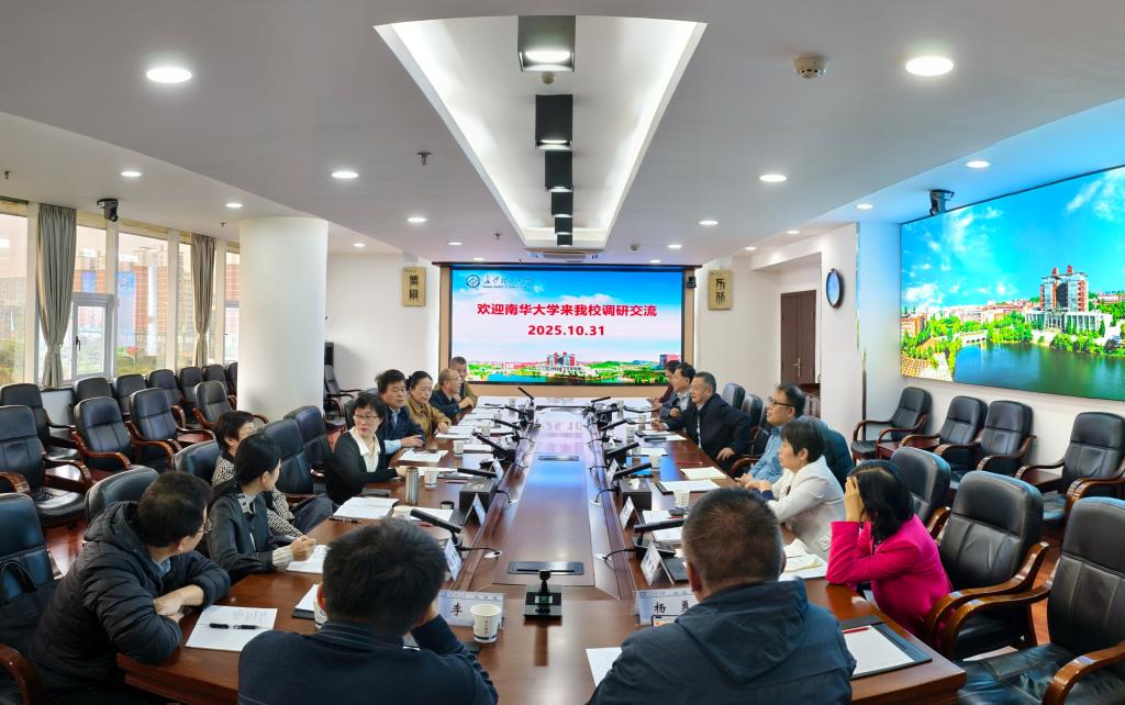 10月31日上午,南华大学教务部詹晶副部长一行10人到MG冰球官网调研,MG冰球官网教务处副处长刘洪深与相关科室负责人参加座谈。