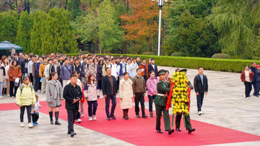 这是一场别开生面的移动思政课,是一场互动式、沉浸式的红色革命文化研学之旅。在刘少奇同志铜像广场,师生举行了庄严的缅怀仪式,向刘少奇同志敬献花篮、鞠躬敬礼。大家缓步围铜像绕行一周,表达对刘少奇同志的无限敬仰,缅怀刘少奇同志的崇高品德和高尚情操,激励自己砥砺奋进,赓续红色基因,传承革命精神。