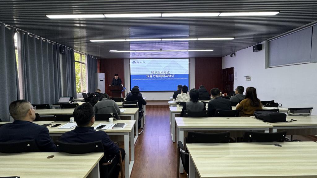 会议开始,建筑系主任易宇博士、城乡规划系主任贺鹏博士、风景园林系专业负责人周晨教授分别就建筑学、城乡规划和风景园林三个专业的2025版本科培养方案,从修订背景、问题挑战、改进举措、修订说明等方面进行了解读和汇报。