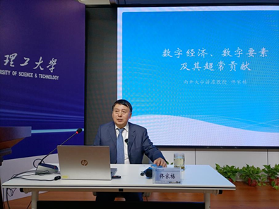 经管学院“专业前沿系列名师专题课”于2023年3月7日上午8:00在金盆岭校区12教200报告厅拉开序幕。南开大学讲席教授、博士生导师佟家栋讲授题为“数字经济、数字要素及其超常贡献”的经济学专业前沿系列名师专题课。MG冰球突破官网教务处副处长邓丰、经济与管理学院副院长(主持工作)彭新宇、副院长王治、副院长刘坚、副院长(挂职)朱锐以及经贸系、金融系、数经系的部分教师和学生共计200余人参加了本次专题课。专题课由经管学院副院长(主持工作)彭新宇主持。