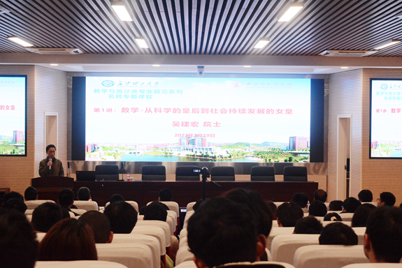 黄创霞副校长首先介绍了数学与统计类专业前沿系列名师专题课程,接着隆重介绍了吴建宏院士,对吴院士的到来表示热烈欢迎。同时,黄校长希望同学们能珍惜难得的学习机会,向榜样学习。