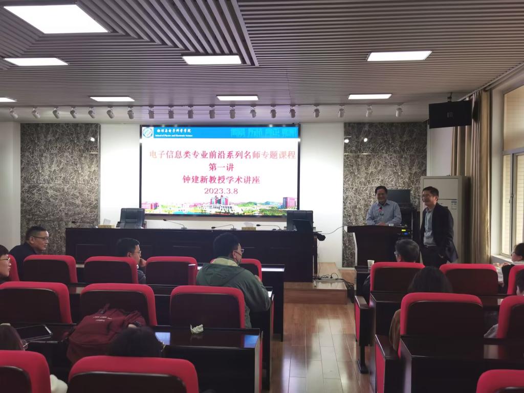 物理与电子科学学院“专业前沿系列名师专题课”于3月8日15点30分在云塘校区理科楼B-413拉开序幕。湘潭大学钟建新教授应邀来MG冰球官网作为课程第一讲的主讲人。学院党委书记张国强、副院长(主持工作)张卫兵、副院长范志强、校督导团团长唐立军教授,与电子系的师生们共计120余人一起聆听了专题课程。专题课由物电学院副院长(主持工作)张卫兵主持。