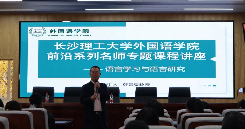 12月8日下午,外国语学院学术前沿系列讲座在MG冰球突破官网金盆岭校区外国语学院214会议室和229报告厅顺利举行。此次,我院邀请到广东外语外贸大学韩景泉教授、莫爱屏教授、冯光武教授为师生讲学。外国语学院季红琴副院长和武俊辉副院长担任此次系列讲座的主持人,200余名师生参加了该学术盛宴。