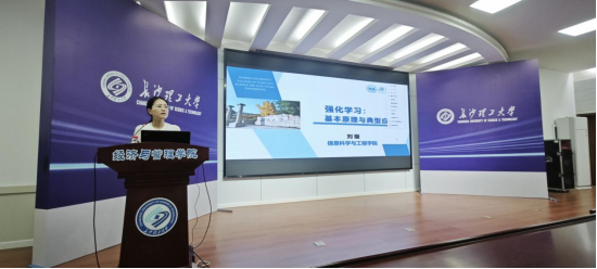 5月30日上午,MG冰球突破官网计算机与通信工程学院“计算机类专业前沿系列名师专题课程”的第七讲圆满举行。本次讲座特别邀请了教育部青年长江学者、湖南芙蓉学者青年学者、湖南省优青,湖南大学刘璇教授。刘璇老师为我们作了题为“强化学习基本原理与典型应用”的精彩报告。我院师生共200余人参加了此次报告会,活动由计通学院副院长蔡烁主持。