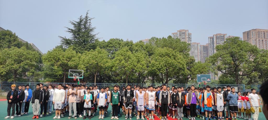 单老师致开幕词,宣读了篮球赛的赛程,同时强调了团学会及体育部学生干部要精心组织,裁判员要秉公执法,运动员要发扬“友谊第一、比赛第二”的体育精神。尔后裁判员和运动员代表进行了宣誓,文娱部啦啦操表演队的表演将开幕式推向了高潮。开幕式后,比赛正式开始。运动员球场上灵活的步法、精彩的球技,精准的投篮,获得了现场观众的喝彩,各班级拉拉队为队员们加油呐喊,赛场高潮迭起。