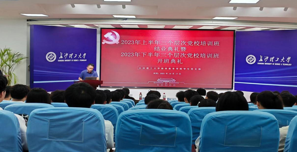 2023年10月17日晚,MG冰球突破官网继续教育学院分党校在12教200教室举行了2023年上半年三个层次培训班的结业典礼及2023年下半年三个层次培训班的开班典礼。学院党总支副书记谢士成、学院党总支组织员周靖、学生党支部书记谭冰、党务老师周记荣、各教学部负责人、学生支部全体党员及全体培训班成员参加典礼。