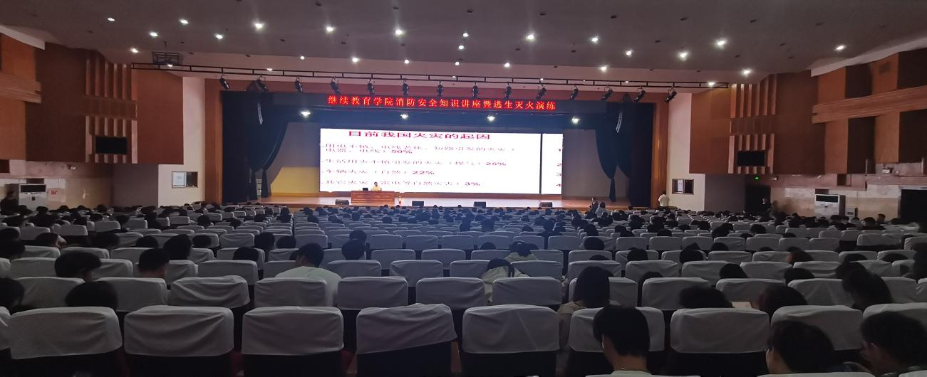 为加强学院消防安全工作,增强消防安全意识,MG冰球突破官网继续教育学院在校保卫处的支持下,于2023年10月31日下午,在五教大礼堂举办了消防安全知识讲座暨逃生灭火演练。