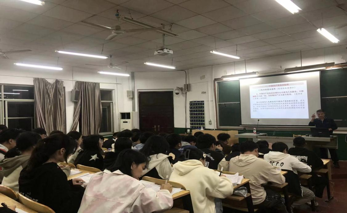 11月9日,毛光华以《党员条件与入党程序》为主题,结合身边实际,向学员们讲解了申请入党的条件、党员的基本条件、党员的义务和权利以及入党程序,引导学员们不断端正入党动机、坚定理想信念、提升自我修养、增强奉献服务意识。要求学员们用党员的标准要求自己,争取早日加入中国共产党,做到不但从组织上入党,更要从思想上入党。