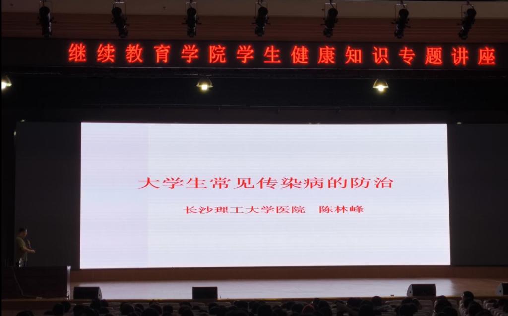 为进一步普及健康教育知识,增强学生自我防病意识,保障学生身心健康,帮助学生养成文明健康的生活习惯。8月20日上午,继教学院在金盆岭校区五教大礼堂举办了新学期学生健康知识专题讲座,邀请了校医院陈林峰院长主讲。学院领导、各教学部负责人及班主任和900余名学生聆听了讲座。