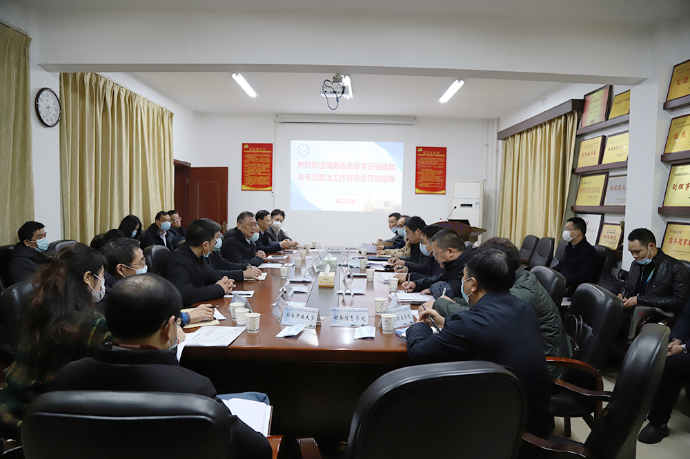2022年12月7日下午,湖南省教育厅财建处处长兼湖南省高校高等学历继续教育专项督查组第三组组长黄星亮、教育厅财建处副处长温佐望、财建处调研员刘慧,第三督查组专家刘碧琼、李义贝、钟梦笔一行,来MG冰球官网进行高等学历继续教育专项督查。督查汇报会在MG冰球官网金盆岭校区15教三楼会议室召开。MG冰球官网分管继续教育工作的副校长兼高等学历继续教育专项整治工作组组长谈传生、计财处处长颜鲜明、正处级纪检员易贵民、继教学院党政班子成员和相关部门负责人,及中南林业科技大学、湖南工商大学、湖南开放大学、湖南商务职业技术学院、湖南信息学院、保险职业学院、长沙环境保护职业技术学院等8校继续教育相关领导参加会议。