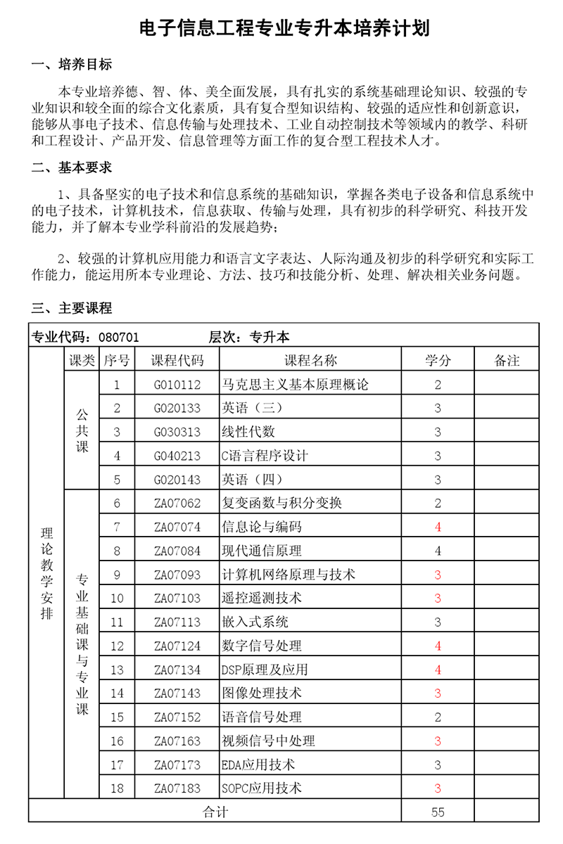 本科培养计划-专业代码:080701 电子信息工程专业