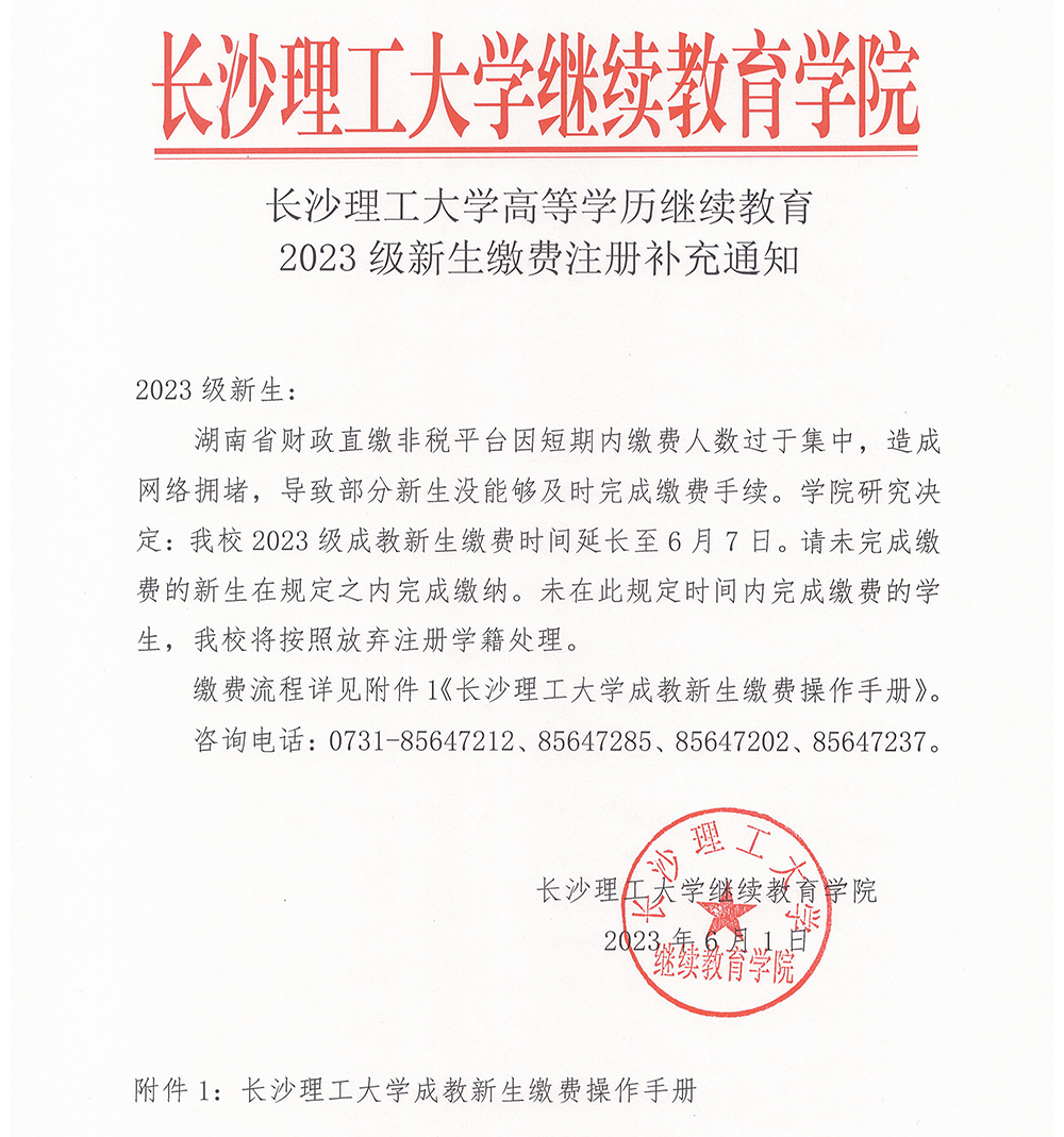 关于成教2023级新生尽快办理入学报到、缴费手续的通知