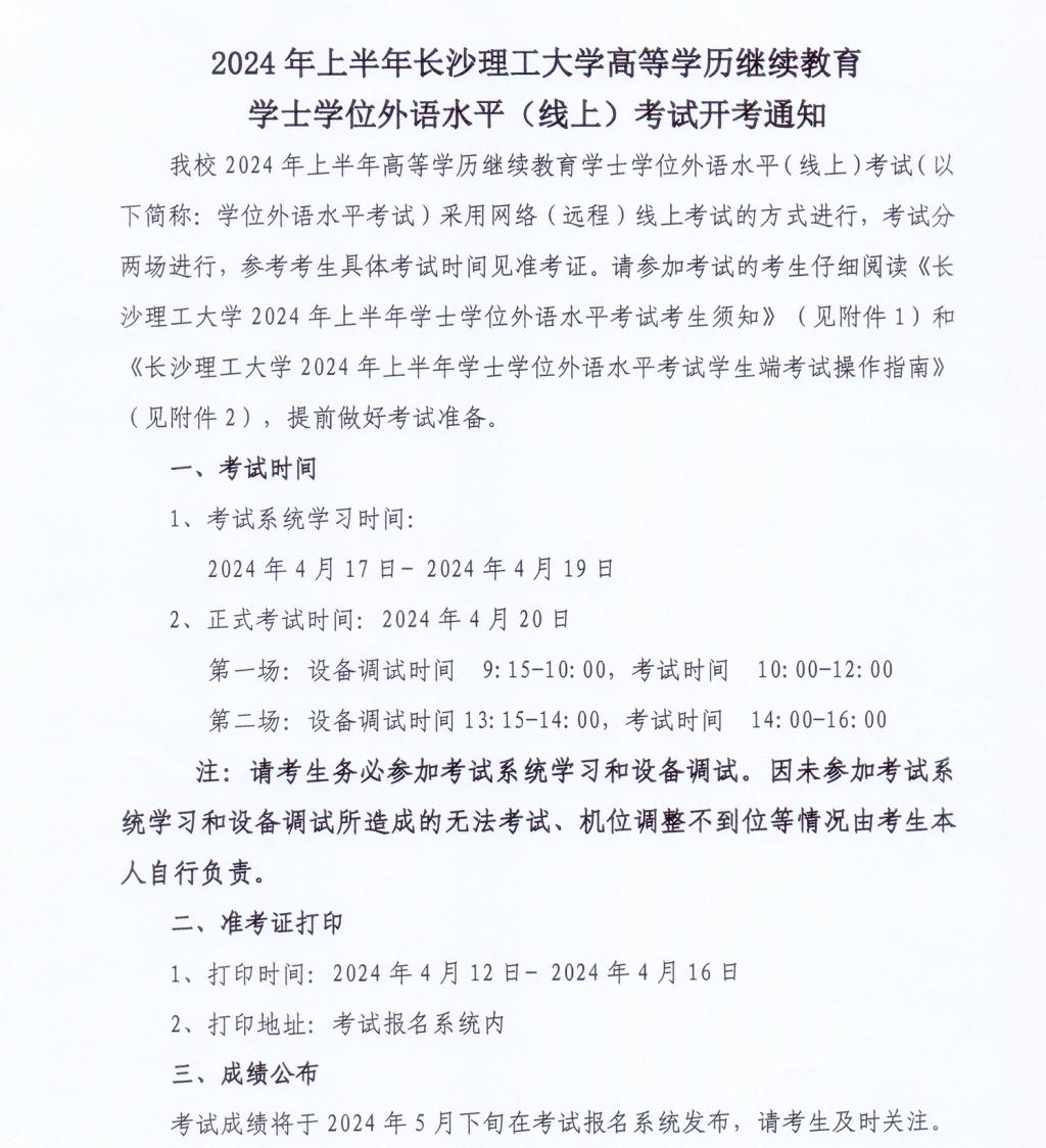 2024年上半年学位外语水平考试开考通知