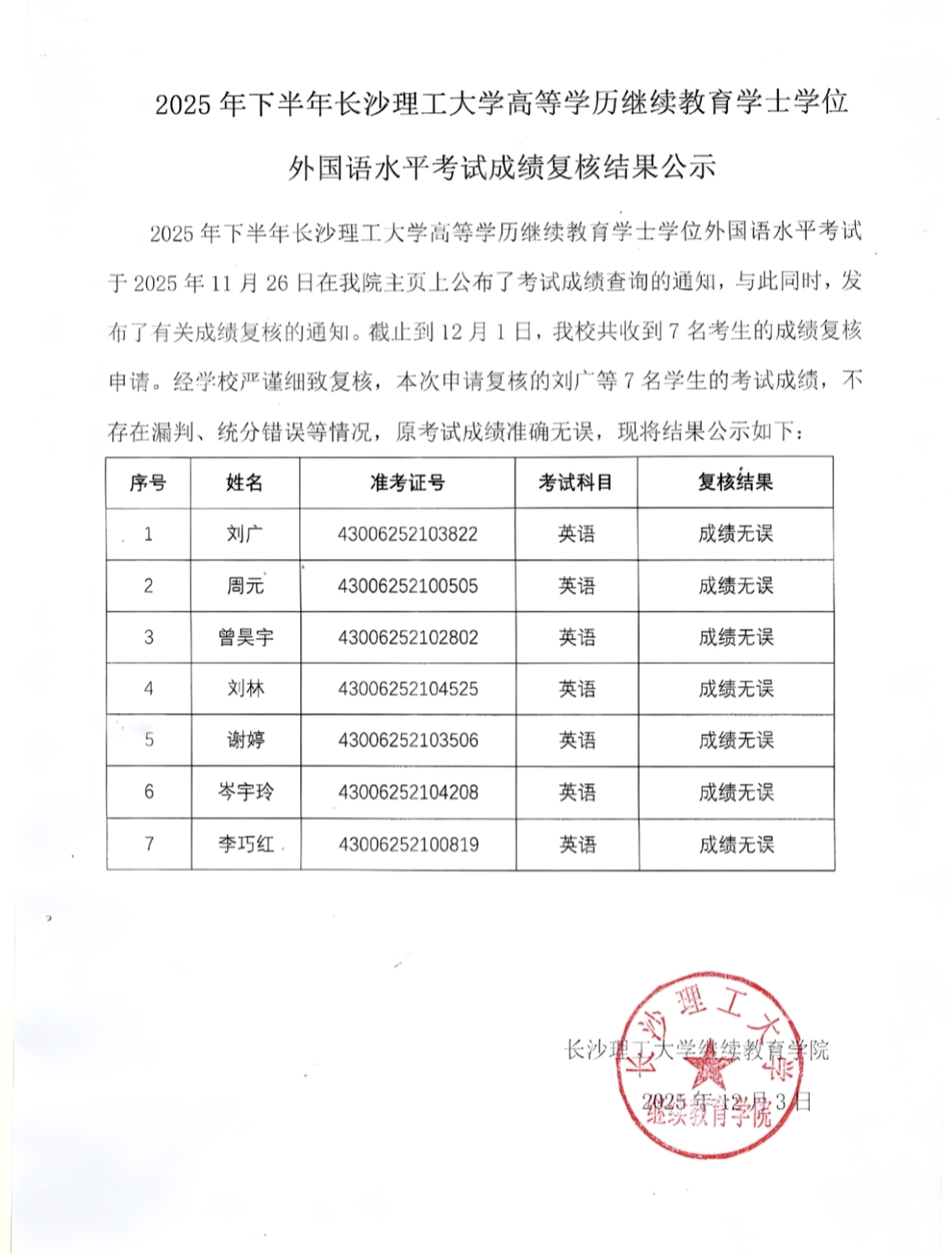 2025年下半年MG冰球突破官网高等学历继续教育学士学位外国语水平考试成绩复核结果公示