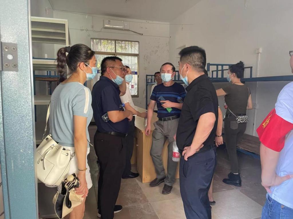 何书记一行全面检查了学院各教学部迎新工作情况。细致检查了14教、15教前面的新生报到地点的接待现场布置情况;沿路巡查了新生进校后报到路线、停车地点等;全面检查了家长休息区、医疗室的布置、学生食堂卫生、消杀毒等情况,重点检查了学生宿舍的床铺、宿舍用品、学生厕所改造等情况,并对现场中发现的不足之处提出整改要求,确保开学各项工作井然有序。