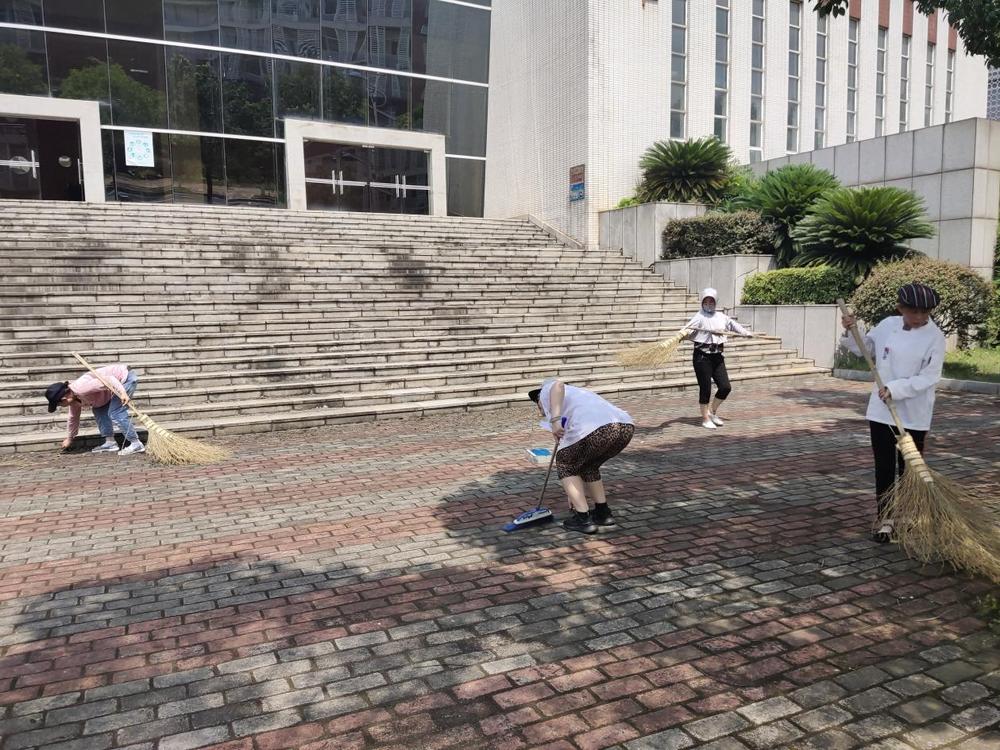 2、组织人员对大会堂进行了一次全方位的卫生大洁,对大会堂外围、过道、玻璃、门窗、地面、桌椅等等彻底清洁并全面消杀,不留卫生死角。