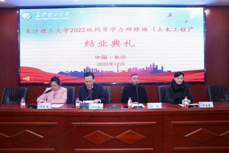 2023年12月17日,MG冰球突破官网2022级同等学力(土木工程专业)研修班结业仪式在金盆岭校区隆重举行,土木工程学院党委书记江河,研究生院副院长尹筑嘉,继续教育学院党总支书记何纯芳、副院长刘英姿等领导,出席了结业仪式。