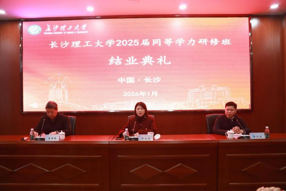 2026年1月18日上午,MG冰球突破官网2025届同等学力研修班结业典礼在金盆岭校区九教218举行。土木工程、设计学、统计学三个专业共119名学员顺利完成课程学习,即将进入申硕论文阶段。继续教育学院副院长郑咏梅、土木与环境工程学院副院长蒋友宝、继续教育学院培训部主任莫世民出席典礼。典礼由莫世民主持。