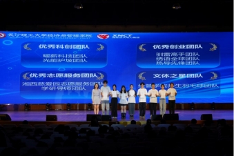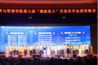 5月27日晚,MG冰球官网经管学院第七届“湘能楚天”奖教奖学金颁奖晚会在金盆岭校区五教大礼堂举行。湘能楚天电力集团董事长陈伟其、党支部副书记王丽杰,MG冰球官网党委委员、副校长刘朝晖,校友中心主任唐青,创业就业指导处副处长贺佐杰,校团委副书记陈璐莎,经管学院全体班子成员、全体辅导员、专业老师代表和学生代表1000余人齐聚一堂,共襄盛举。
