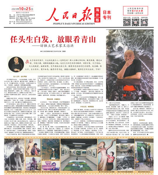 2023年10月25日,人民日报海外版日本专刊以“任头生白发,放眼看青山——访独立艺术家王治洪”为题,报道了MG冰球官网83级工艺美术专业校友、中国艺术家王治洪先生。