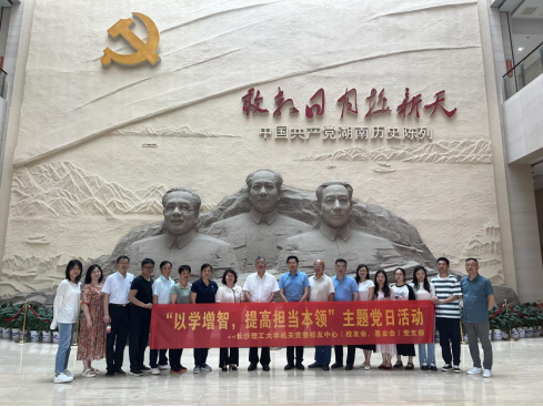 为深入学习贯彻党的二十大精神,开展学习贯彻习近平新时代中国特色社会主义思想主题教育,落实“一课一片一实践”活动要求。5月31日,校友中心(校友会、基金会)党支部在湖南省党史陈列馆开展了“以学增智,提高担当本领”的主题党日活动。副校长、基金会理事长谈传生、校友总会会长洪源渤率领支部全体党员和积极分子参加了此次活动。