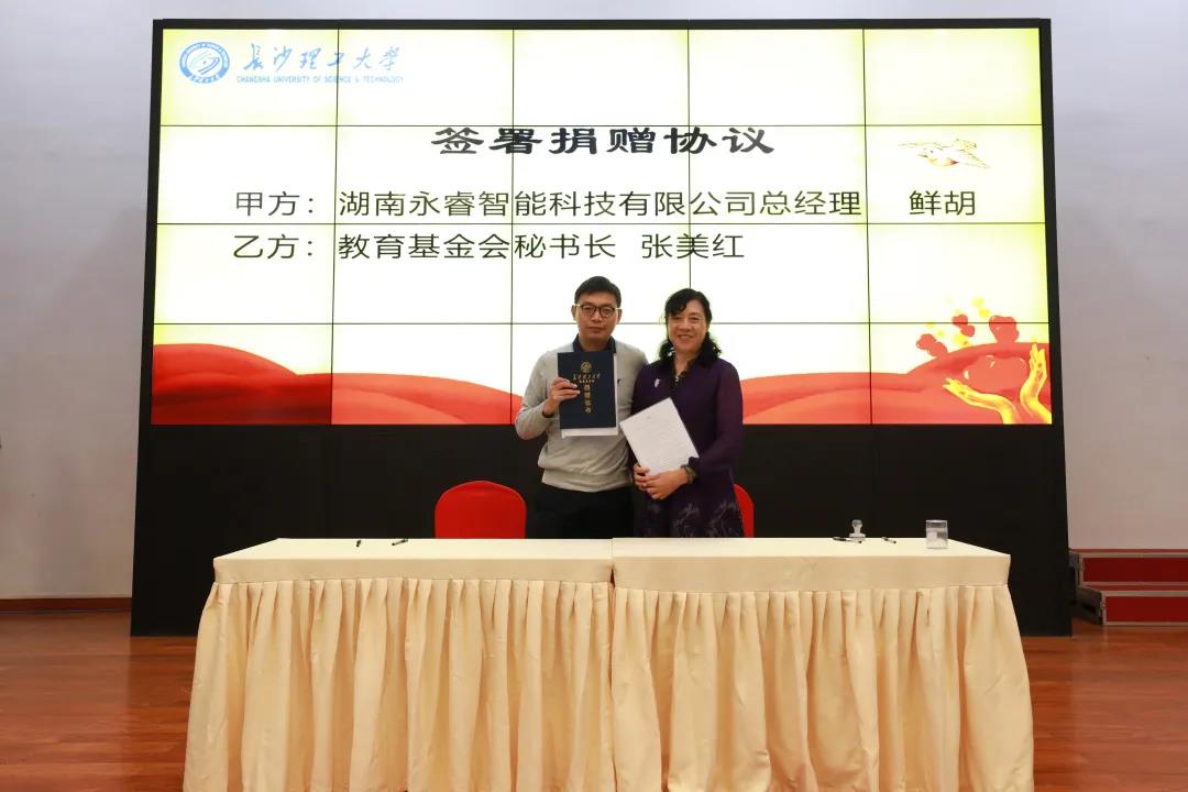 母校的每一次进步,都希望千万校友共同见证;母校每上一个台阶,都离不开校友的爱与贡献。在母校65周年校庆之际,01级鲜胡校友代湖南永睿智能科技有限公司向母校捐赠价值100万元路灯、苗木等物资用于学校乡村振兴点的建设。在这丰收的季节回到母校交流,鲜胡表示感到十分自豪也有点小紧张。长理对自己各方面影响十分深刻,作为长理学子,希望为长理的乡村振兴计划出一份力,同时承担起应有的社会责任。愿长理的同学们肩...