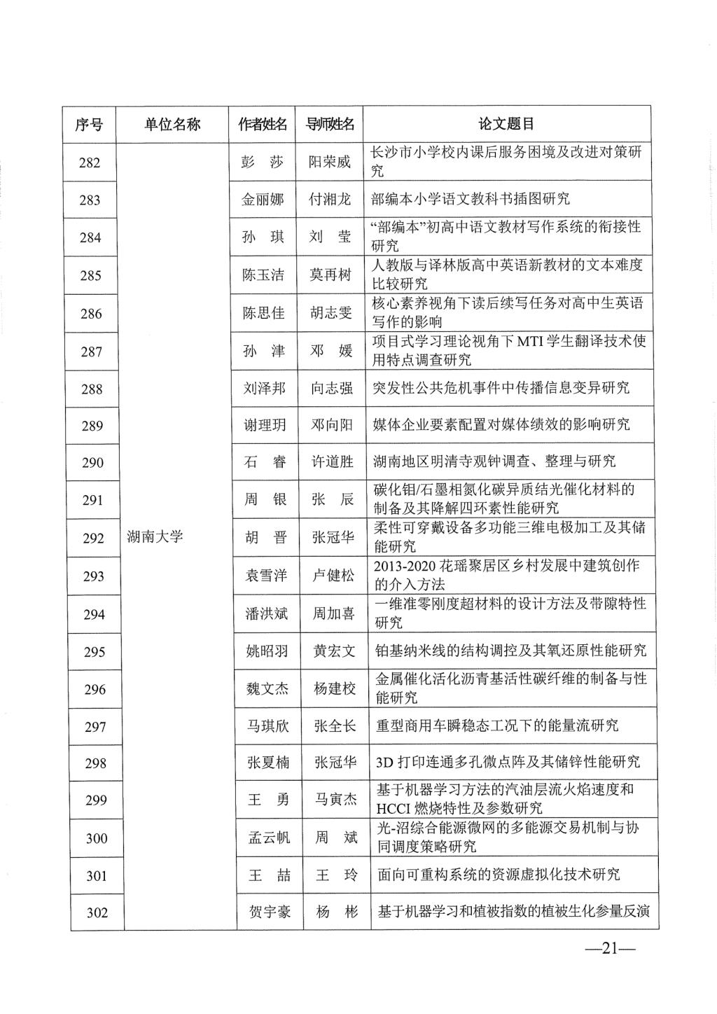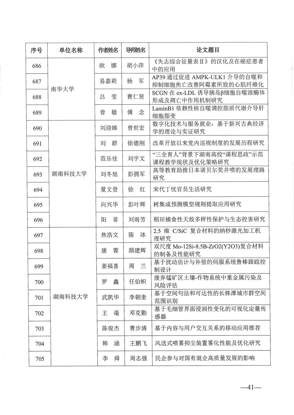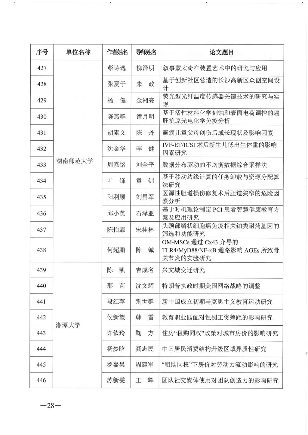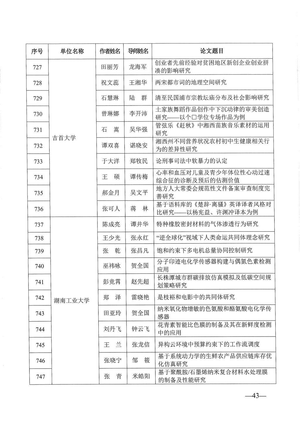 关于公布2023年湖南省优秀博士硕士学位论文名单通知