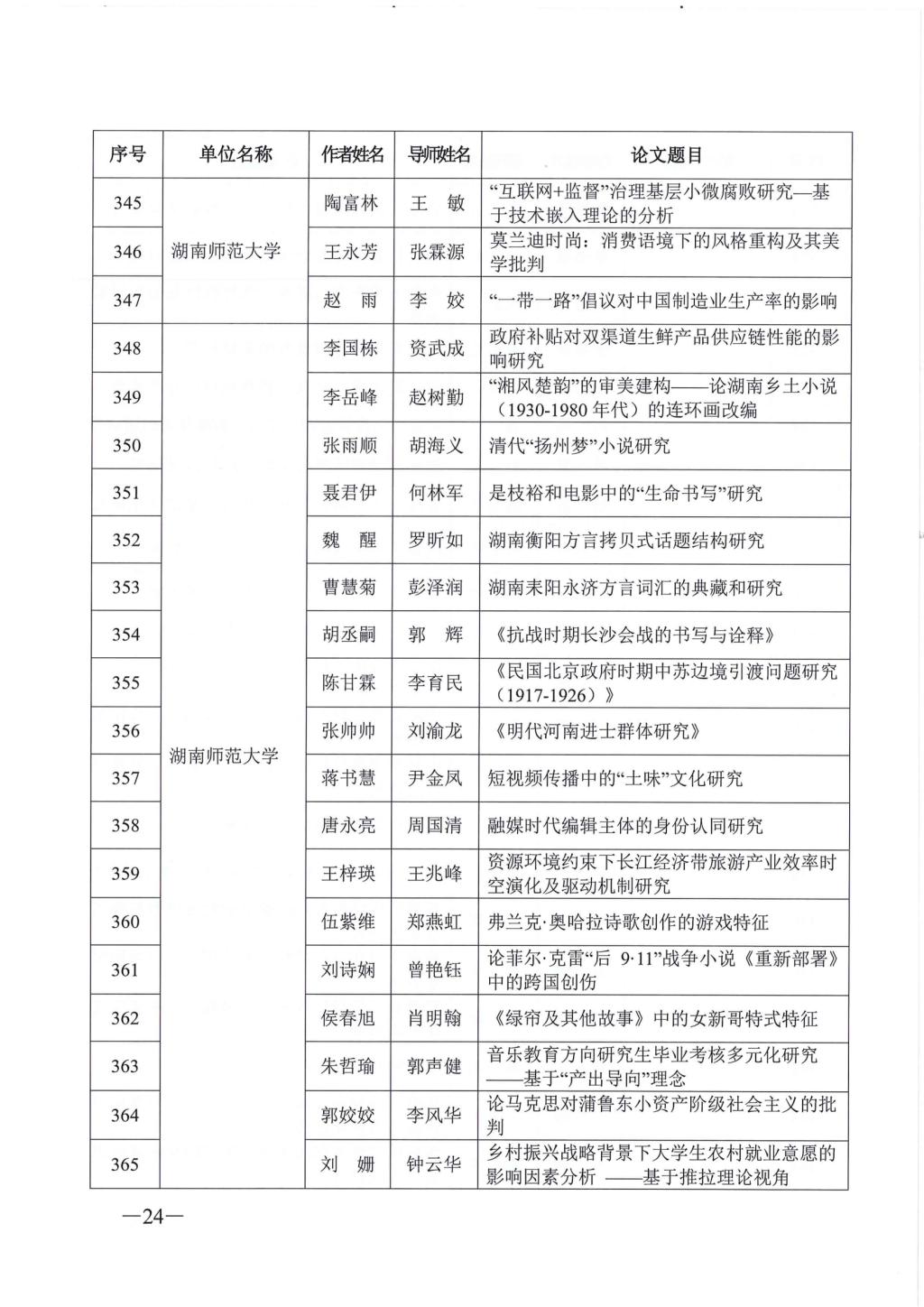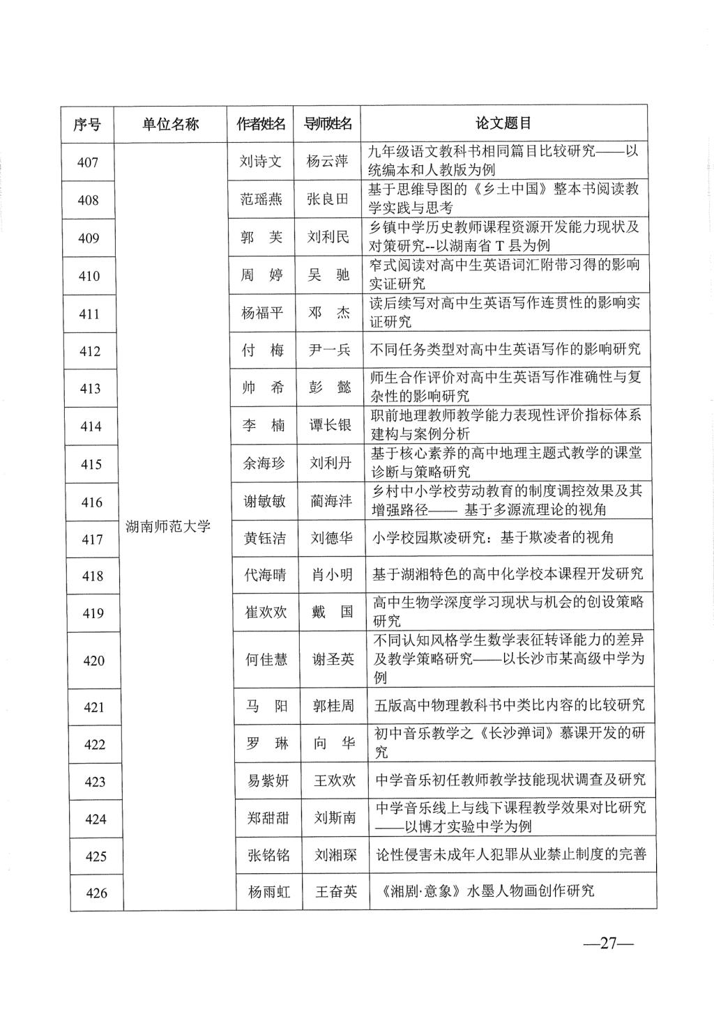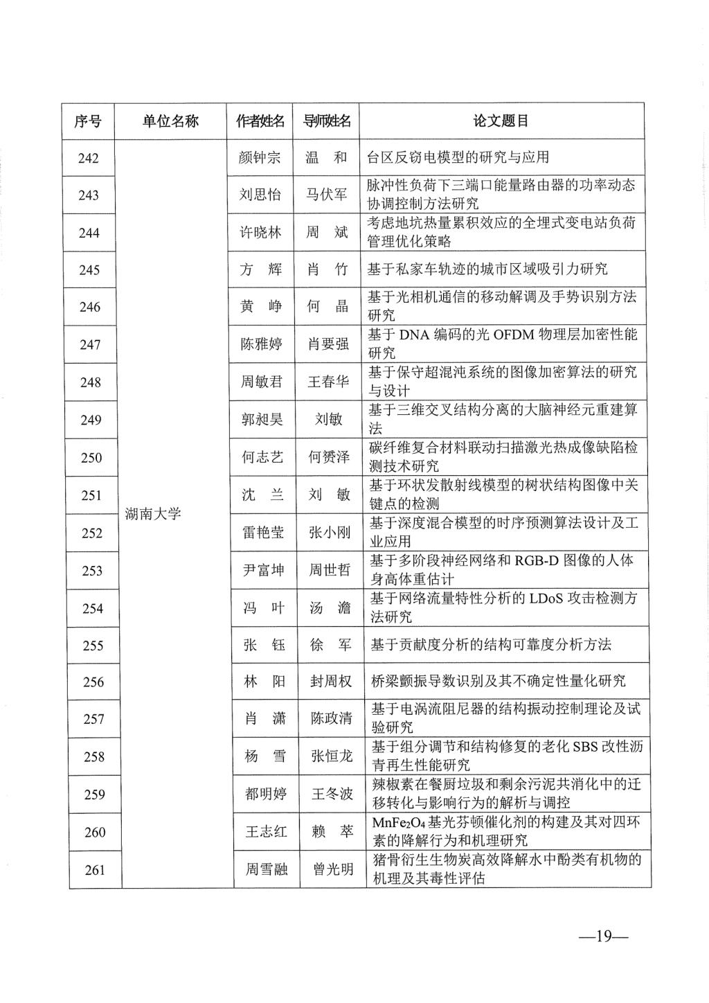 关于公布2023年湖南省优秀博士硕士学位论文名单通知
