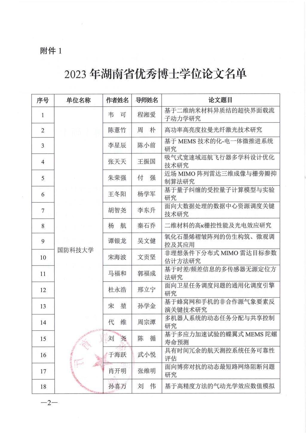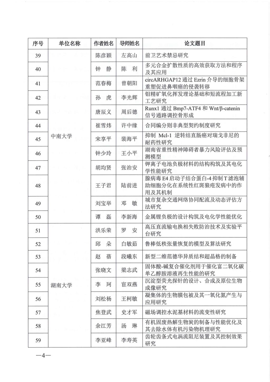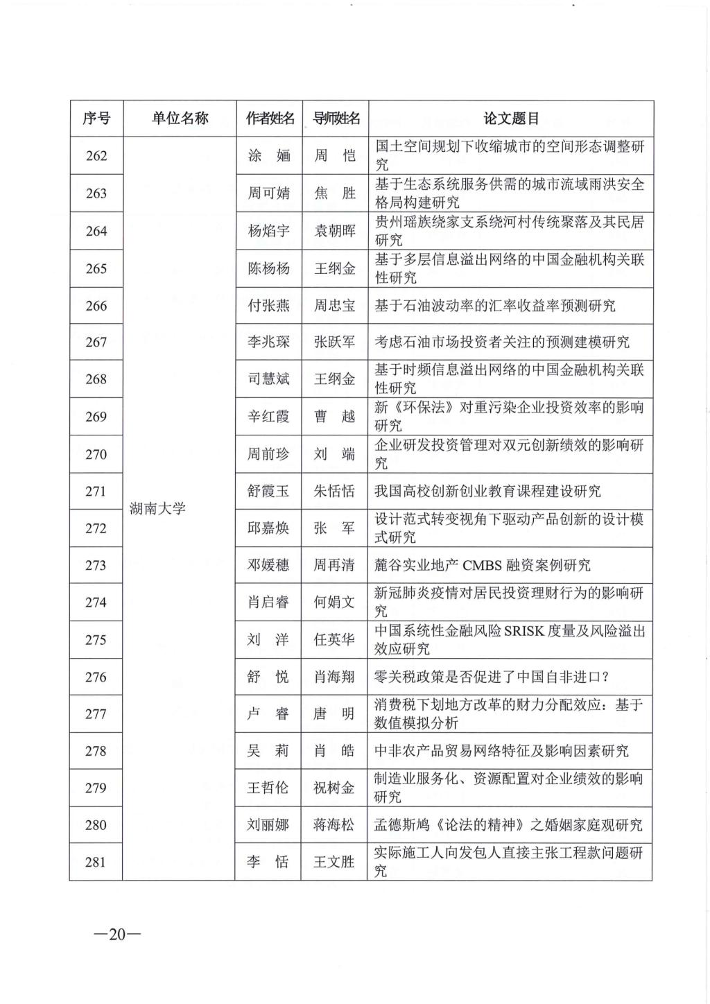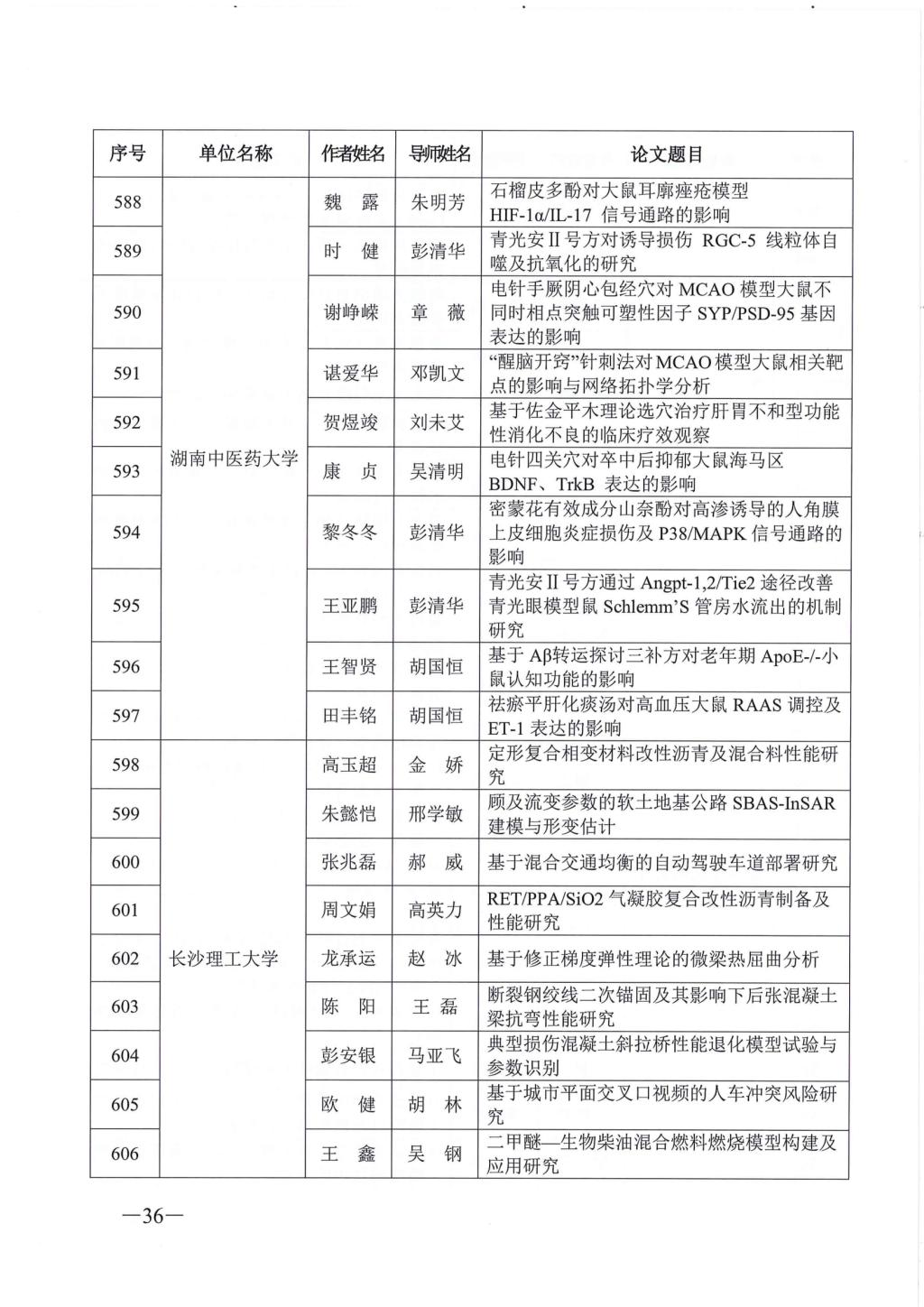 关于公布2023年湖南省优秀博士硕士学位论文名单通知