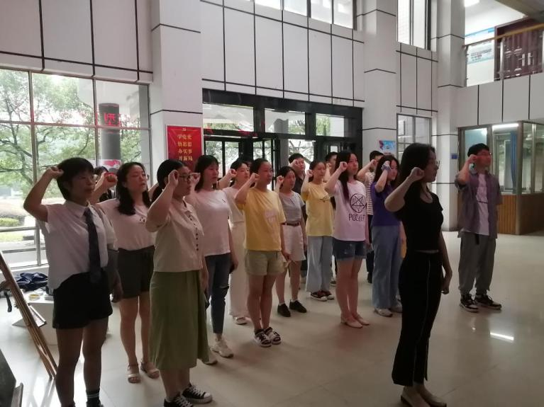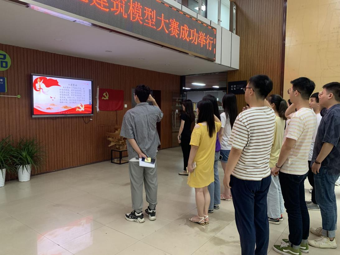 6月22日上午十点,建筑学院毕业生党员在十六教一楼大厅举行重温入党誓词、宣誓仪式。