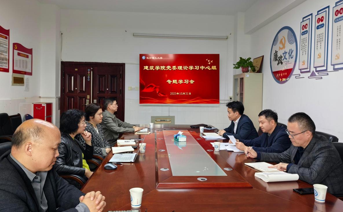 10月31日下午建筑学院党委理论学习中心组在金盆岭校区16教305会议室召开学习会议,专题学习党的二十届四中全会精神。学院党委书记熊鹰主持会议并作主题发言学院党委理论学习中心组全体成员参加会议。