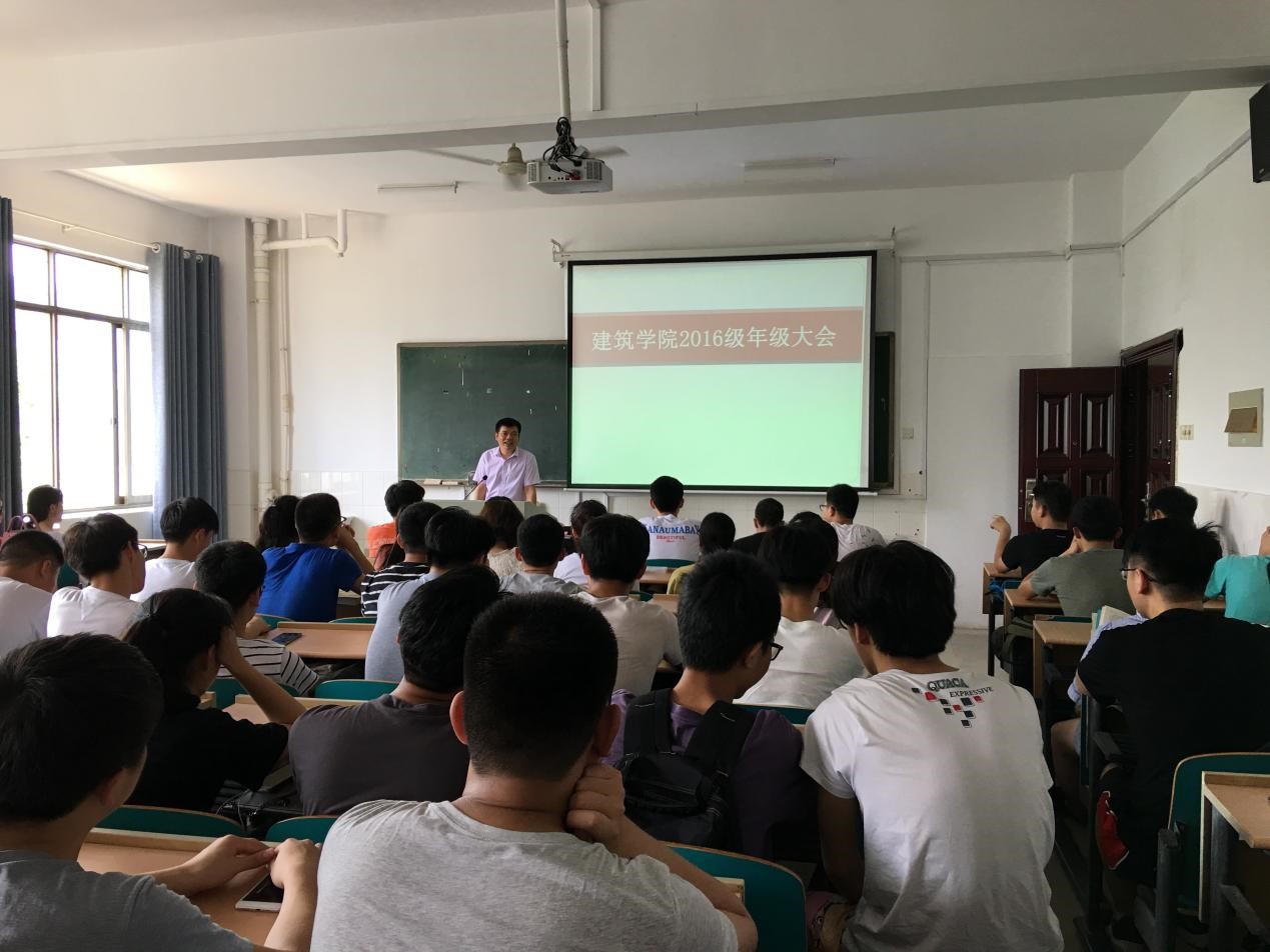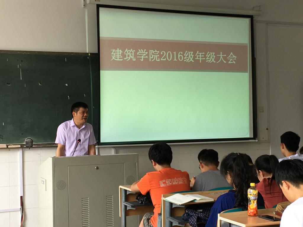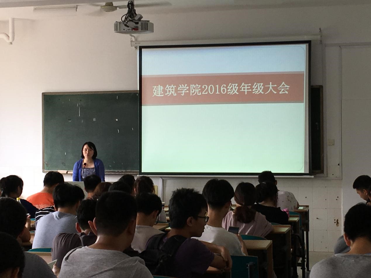 5月17日中午,建筑学院2016级年级大会于金盆岭16教314正式召开。本次大会由16级辅导员周芳老师主持,建筑学院谢士成副书记出席,全体建筑学院16级学生参与。