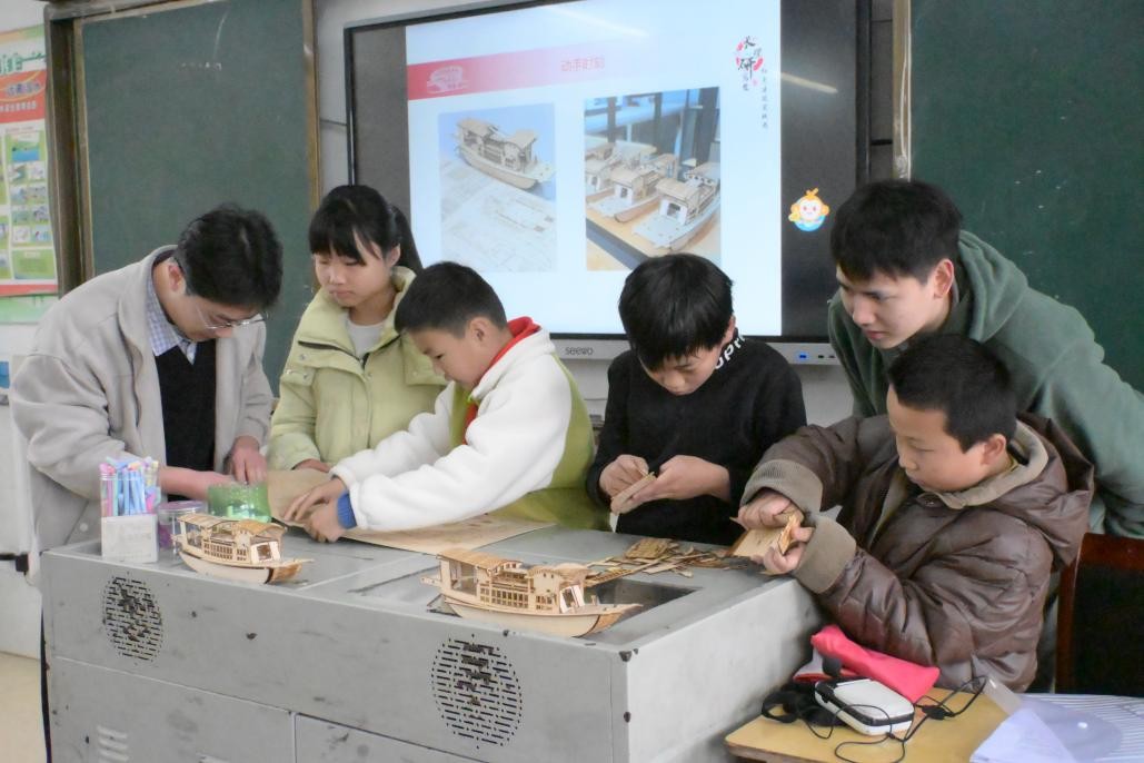 活动现场,实践团指导老师王宇霖向同学们阐述了实践团的初心与使命。他表示,实践团始终以红色建筑为载体,深耕红色文化传播,致力于讲活红色故居故事、传承红色精神,让少年儿童在感知建筑之美的同时,读懂背后的革命内涵。随后,实践团成员王子晗、夏思源分别围绕石鼓书院、恭城书院的实践过程用通俗易懂的语言,从红色建筑的历史背景、建筑特色入手,为同学们讲述革命先烈的奋斗故事。活动中,实践团还通过模型互动、趣味问答等形式,引导孩子们近距离触摸红色建筑、感受文化魅力,深入了解建筑背后的革命文脉,让红色文化不再遥远。