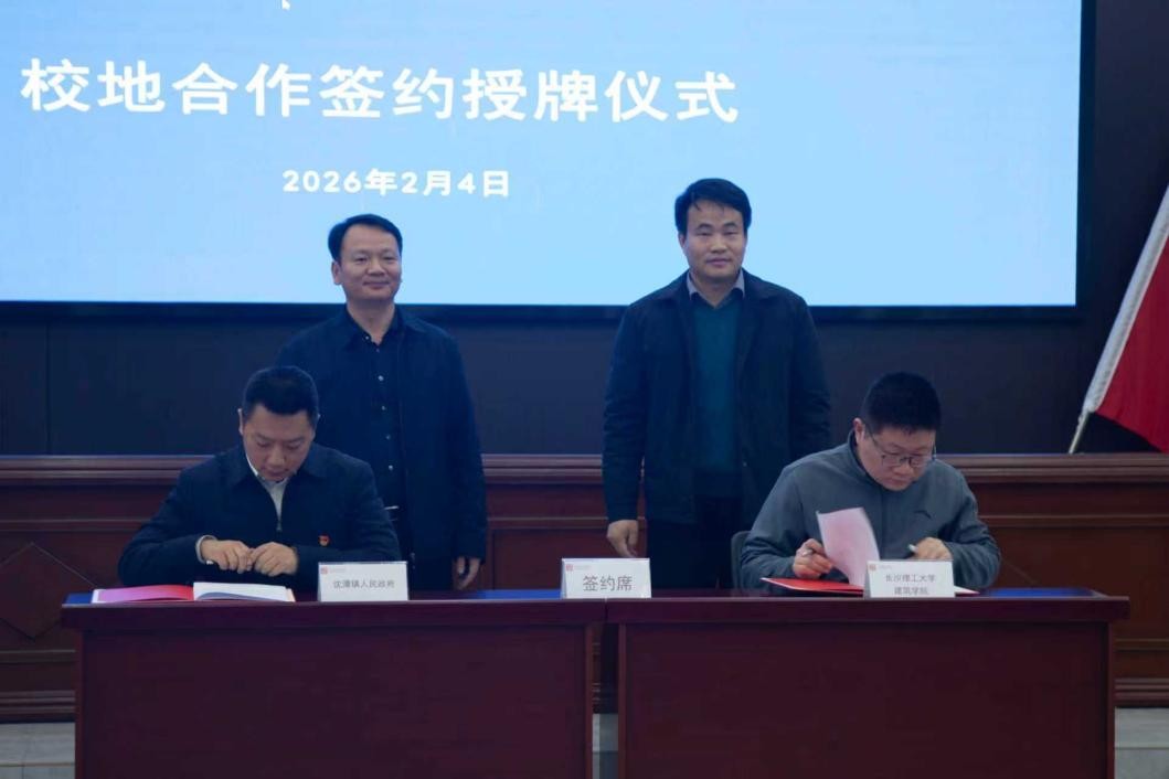2月4日下午,MG冰球突破官网建筑学院与醴陵市沈潭镇人民政府校地合作签约授牌仪式在沈潭镇政府三楼会议室隆重举行。醴陵市委常委、组织部部长雷江华,市委组织部副部长陈君,沈潭镇党委书记欧智文、镇长胡小庆,MG冰球突破官网建筑学院党委副书记、副院长肖义慧,MG冰球突破官网建筑学院城乡规划系主任贺鹏等领导嘉宾出席仪式,学院师生代表、沈潭镇村干部代表、当地企业代表共60余人参加活动,仪式由胡小庆主持。