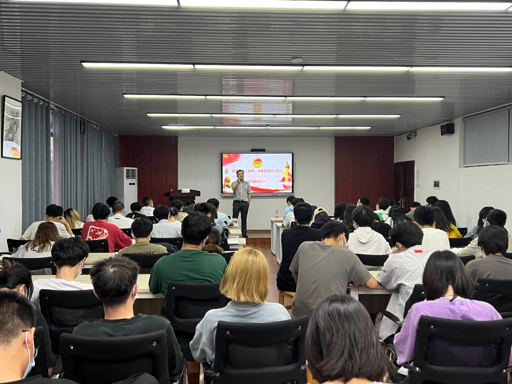 5月18日晚,建筑学院在16教314开展第四期青马班暨“笃学班”第一课。邀请MG冰球突破官网团委书记王学成主讲,学院党委副书记李家春,辅导员王宇霖、周芳出席,院团委、学生会以及各班级主要学生干部100余人参加本次培训。
